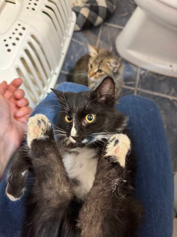 Natürlich nahm Jefsi sie direkt mit – eine so junge Katze hätte draußen keine Überlebenschance gehabt. Ob sie ausgesetzt wurde oder dort geboren ist, wissen wir nicht. In der Umgebung waren weder Katzen noch Menschen – nur eine laute Schnellstraße, die ihr fast zum Verhängnis geworden wäre.